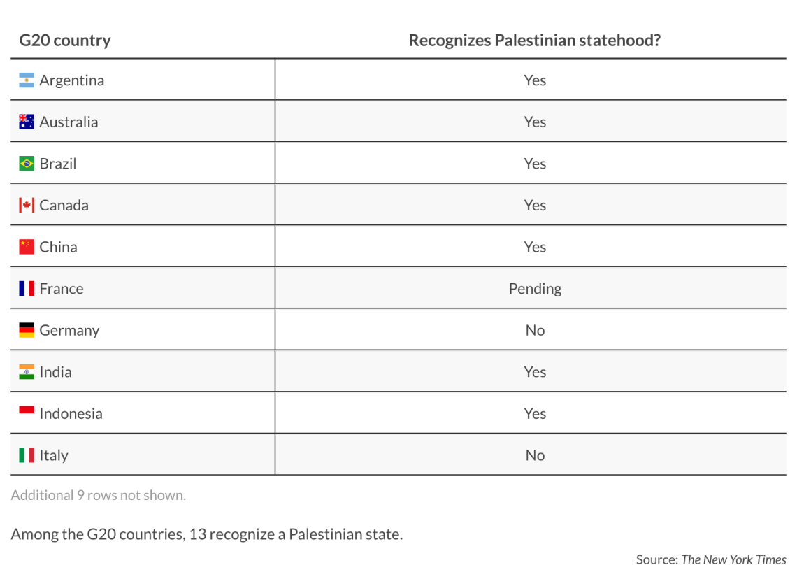 Given the likely negative international repercussions, why are five G20 countries moving to recognize Palestine? As the late U.S. House Speaker Tip O’Neill often said, “All politics is local.”